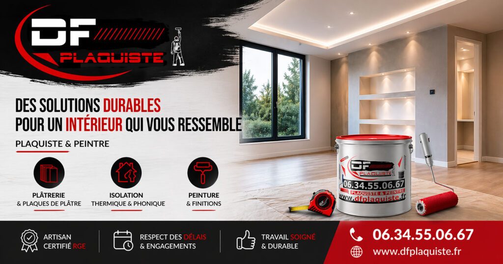 DF Plaquiste est également certifié RGE, ce qui peut permettre de bénéficier d’aides pour certains travaux d’isolation.
